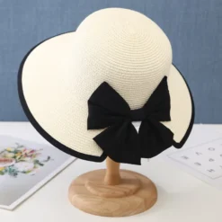 Chapeau De Paille Clair Avec Gros Nœud