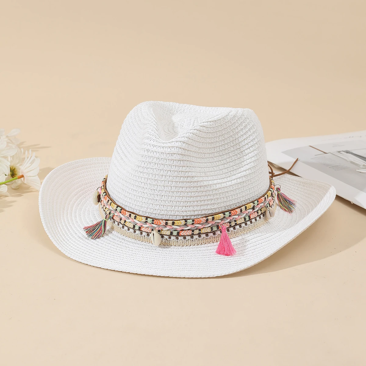 Ce chapeau femme de cowboy à pampilles et coquillages est l’accessoire parfait pour ajouter une touche bohème chic à votre tenue. Fabriqué avec soin, il allie style et qualité pour vous garantir un look inégalable.